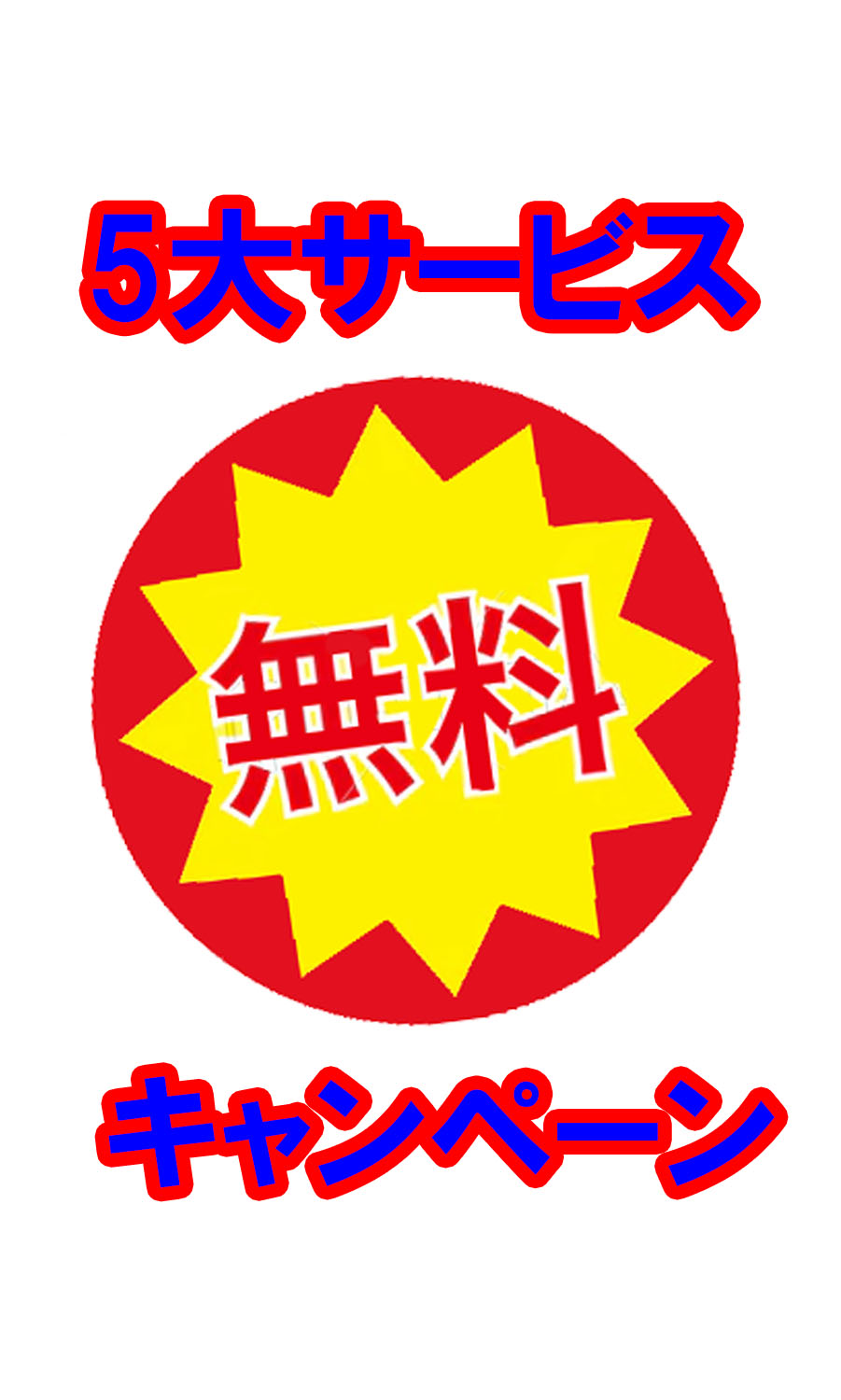 5つのサービスが無料になる、期間限定キャンペーンです。お送りしたDMをお持ちのお客様だけの特別なご案内になりますので、お見逃しなく!