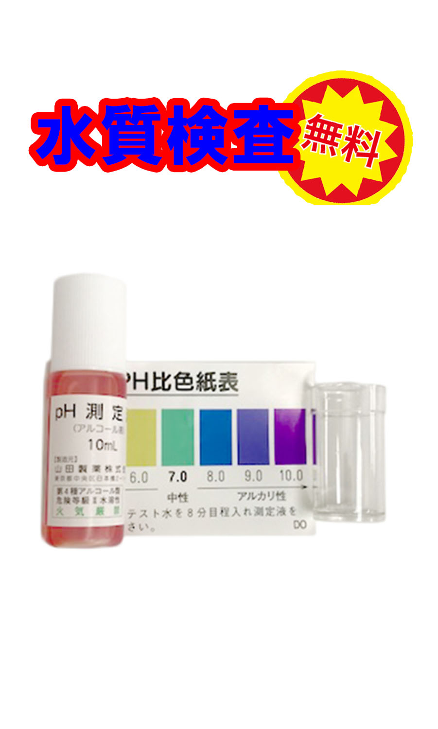 その場でお水をチェックし、専用の試薬でアルカリ生成水になっているかを確認します。 色の変化で状態がひと目でわかる安心チェックです。
